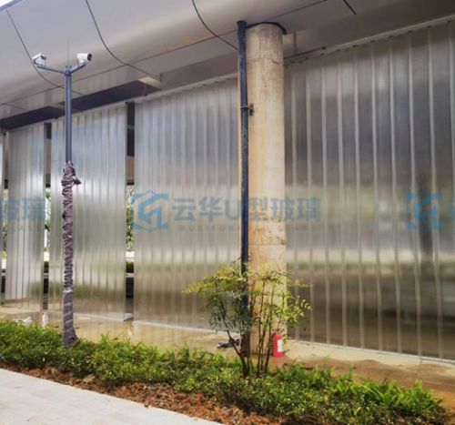 U玻幕墻為無鋼架龍骨結(jié)構(gòu),兩翼起到加強(qiáng)作用,強(qiáng)度超過同厚度普通平板玻璃的10倍以上,能夠自成墻體。